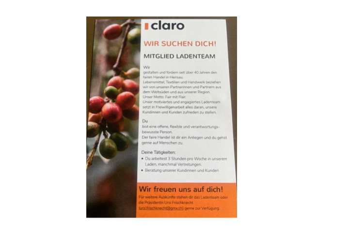 Seit mehr als 40 Jahren verkaufen wir fair gehandelte Produkte in Herisau. Unser Sortiment umfasst Lebensmittel, Kunsthandwerk v.a. aus Asien und Afrika, Soglio-Pflegeprodukte, Kerzen und Glas aus Werkstätten in der Schweiz sowie Regio-Produkte aus Herisau.